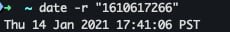 • The Unix timestamp 1610617266 corresponds to January 14, 2021