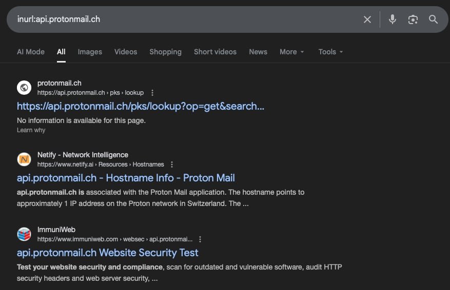 3. Google Dorking ProtonMail API Endpoints