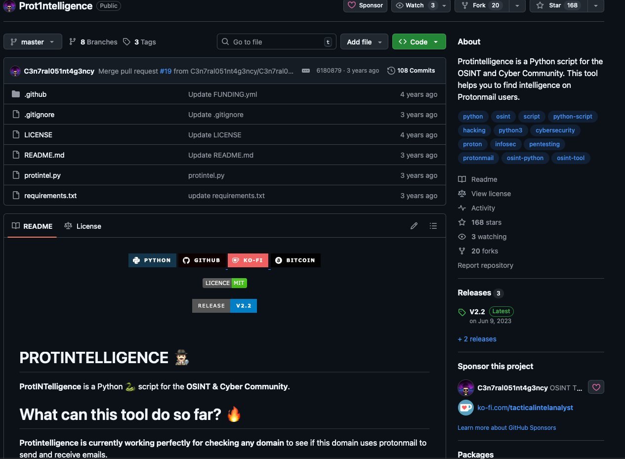 To better understand how this endpoint could be used, a search was conducted on GitHub for existing ProtonMail OSINT tools. This led to the discovery of: